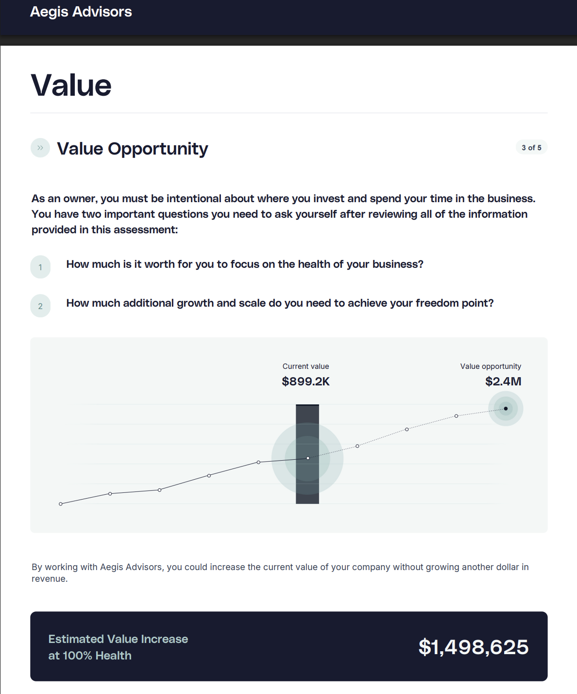 - Health Score – the specific areas holding back your valuation